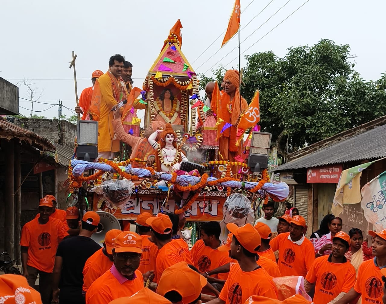 তারপর ধীরে ধীরে বাঁশতলা কালনাগিনী নদীঘাট, মা মনসা মন্দির, মন্মথপুর প্রণবানন্দ বিদ্যামন্দির, বিজননগর শিতলা-বিশালাক্ষ্মী মন্দির হয়ে নানা ট্যাবলো দিয়ে সুসজ্জিত রথ গ্রামের মধ্যে দিয়ে সুদীর্ঘ পাঁচ কিলোমিটার পথ অতিক্রম করে । শান্তি ও কল্যাণের সংকল্পে এই রথ পরিক্রমায় স্থানীয় প্রশাসন সহ পথের দুইধারে শতশত উৎসাহিত মানুষের সমাগম ঘটে।